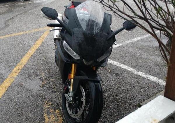 Le due foto non consentono di capire troppo delle variazioni avvenute sul modello 2021; tanto per cominciare, però, siamo indiscutibilmente al cospetto di una RSV4 Factory, come si evince dal piedino forcella Ohlins. Esteticamente, la carenatura appare nettamente più affilata e moderna nonché dotata di gruppi ottici verosimilmente a LED, ma soprattutto con le appendici aerodinamiche integrate all'interno della doppia carenatura come avviene sulla RS 660.