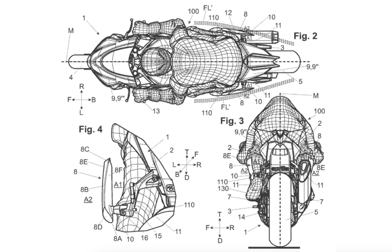 A differenza delle ali fisse, le leg wings (pannelli verticali posizionati lungo i fianchi della moto) lavorano in simbiosi con la posizione del pilota: