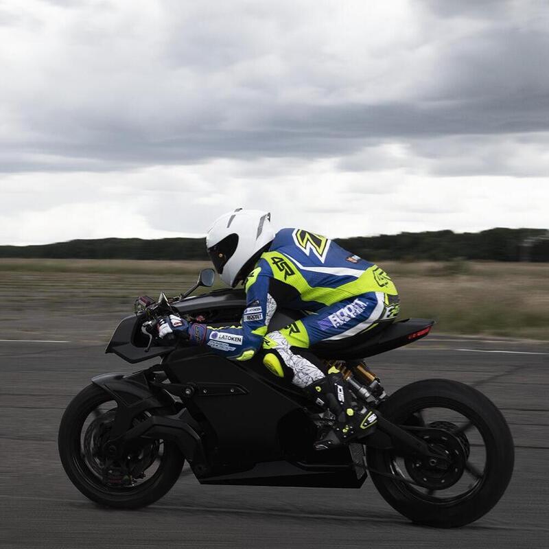 La moto, del resto, è un progetto raffinatissimo con telaio monoscocca in fibra di carbonio che incorpora la batteria da 16.8kWh/399V. Le sospensioni vedono un sistema oscillante anteriore con bracci in fibra di carbonio e perno centrale e in pregiata fibra di carbonio è anche il forcellone posteriore. Le prestazioni sono notevoli, con una velocità massima (autolimitata) di 200 km/h e 3,1 secondi per arrivare a 100 km/h partendo da fermi, grazie a un motore capace di 173Nm di coppia (erogata al motore) e di 827Nm (alla ruota, con una potenza di 87kW/117cavalli.