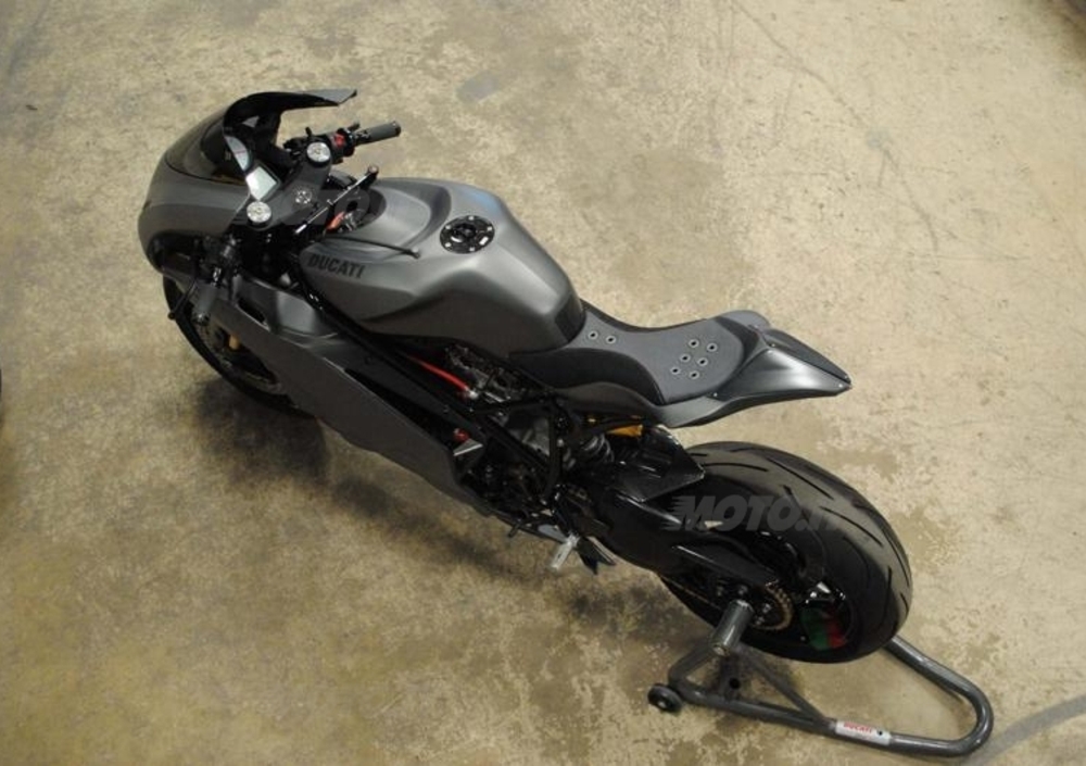 Tutta la carenatura viene sostituita con quella in fibra di carbonio di Ducati Performance (con l'andamento della prima versione, contraddistinta dalle doppie prese d'aria) mentre la sezione serbatoio/codone, sempre realizzata in fibra di carbonio, è prodotta dalla spagnola Radical. Il codone, una splendida e leggerissima struttura autoportante, fa evidentemente il verso... alla sportiva di un'altra casa italiana, mentre il serbatoio presenta sul lato destro la "finestrella" trasparente che Ducati adottava sulle sue moto da endurance per valutare il livello del carburante.