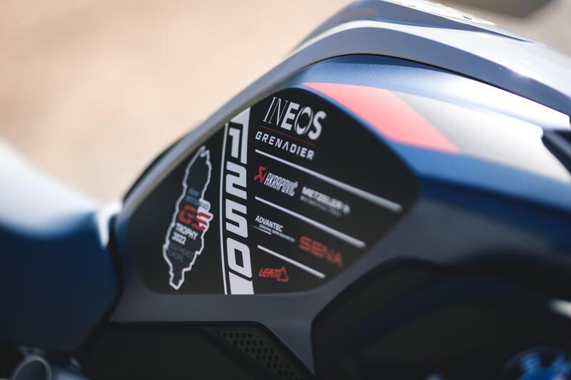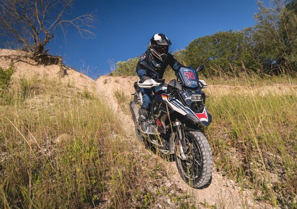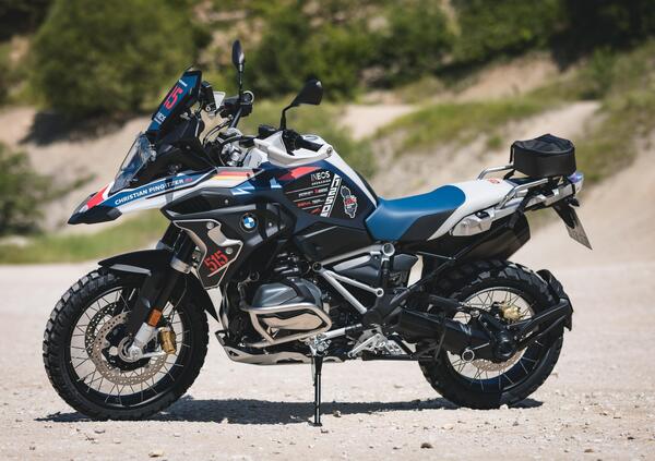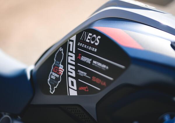 Oltre alla particolare verniciatura bicolore Lightwhite e Gravityblue metallizzato opaco - in combinazione con adesivi GS Trophy appositamente preparati -, questa 1250 GS affronterà i sette giorni di avventura con una serie di modifiche per l'uso in competizione. Ma va anche detto che il modello 2023 di serie della GS sarà offerto anche con questa finitura bicolore.