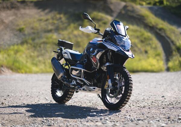 Le pedane enduro molto robuste della R 1250 GS Adventure, nonché le leve del cambio e del freno a pedale regolabili sono dedicate al duro utilizzo in fuoristrada. Le ruote a raggi incrociati montano pneumatici Metzeler Karoo 4 a scolpiture profonde in luogo Karoo 3 standard. Un parabrezza sportivo, la sella rally e il silenziatore Akrapovic completano le dotazioni speciali.