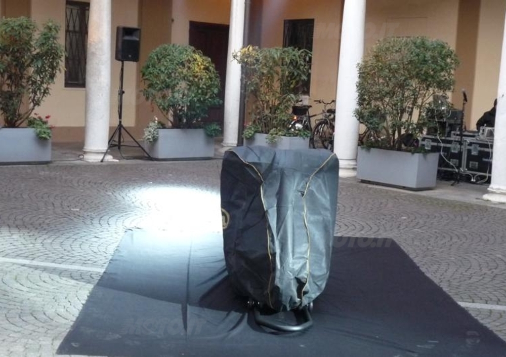 In un pomeriggio meteorologicamente piuttosto frizzantino, ci ha pensato la nuova Norton Commando 961 Sport a riscaldare gli animi del pubblico presente ieri (domenica 12 dicembre) nel cortile della Prefettura di Cremona, dove la rinata bicilindrica inglese è stata ufficialmente svelata in terra italiana. Il telo che copriva la nuova Norton (che, lo ricordiamo, viene costruita proprio all’interno del circuito di Donington: più inglese di così….), è stato sollevato dall’importatore Davide Rebeccani e dalla moglie Pinuccia, titolari della Motocicli Speciali (www.nortonitalia.com e www.motociclispeciali.com), alla presenza del “padrone di casa”, ovvero il Prefetto di Cremona, Dottor Tancredi Bruno di Clarafond, egli stesso motociclista praticante.