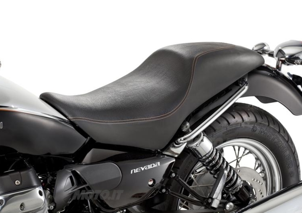 In sella alla Nevada Anniversario si ha la l’immediata percezione di essere alla guida di una moto leggera, compatta e scattante che offre un’immediata sensazione di controllo, caratteristica ulteriormente incrementata grazie al nuovo abbinamento sella-manubrio per una moto da guardare ma ancor più da guidare.