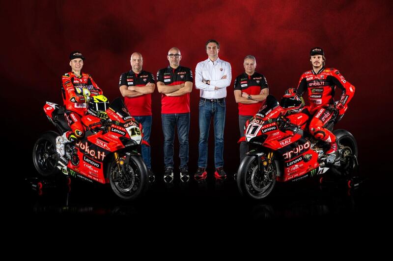 Sono livelli diversi di partecipazione, di compartecipazione, di condivisione di obiettivo e divisione di glorie. C’è la MotoE, la serie delle elettriche che è un po’ una novità per tutti, forse meno per Ducati che comunque produce la Moto uguale per tutti del Campionato, di più proprio per Aruba che può vantare esperienza tecnologica più vicina all’argomento. Insieme le Ducati V21L di Alessandro Zaccone e Luca Bernardi, nei colori del team Aruba Cloud. In mezzo c’è la confermata formazione della Squadra impegnata nel Mondiale Superbike. È la storia del sodalizio, la natura originale di una associazione materializzata 11 anni fa e che è diventata sinergia. Ancora, al di là della sponsorizzazione o del titolo, un qualcosa che pone l’accento sulla componente viscerale dell’unione, forse anche per questo delle meraviglie.