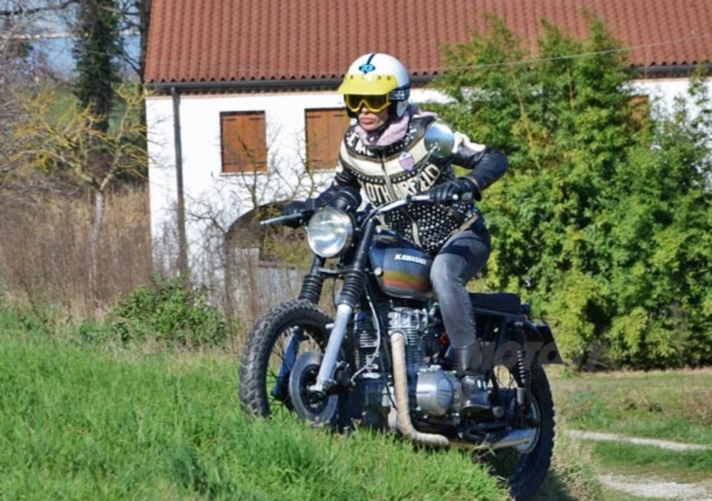 La descrizione della moto è doverosa ma ora passiamo al test della moto. Sono partita per il mio giro su asfalto e sterrato. Ho guidato con il sorriso questa special, che nel motore è gestibilissima: pochi cavalli e di facile erogazione, un impianto frenante che non ti assicura staccate estreme ma per l’uso normale è più che sufficiente. Il divertimento si è amplificato percorrendo alcuni argini e delle stradine nella campagna padovana, dove erano ancora evidenti i segni di una precedente pioggia disastrosa.