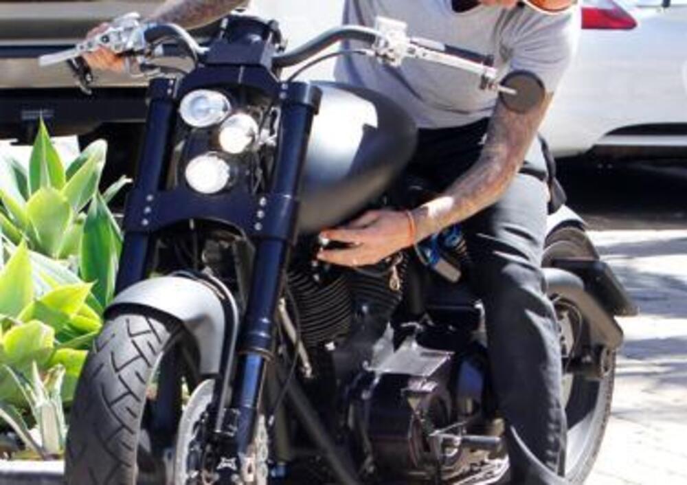Anche in vacanza a Los Angeles Beckham non rinuncia ad un giro sulla sua vistosa nuova moto, una Confederate Hellcat F113 del 2005. Una moto non per tutti i portafogli visto che il prezzo si aggira intorno ai 47mila dollari.