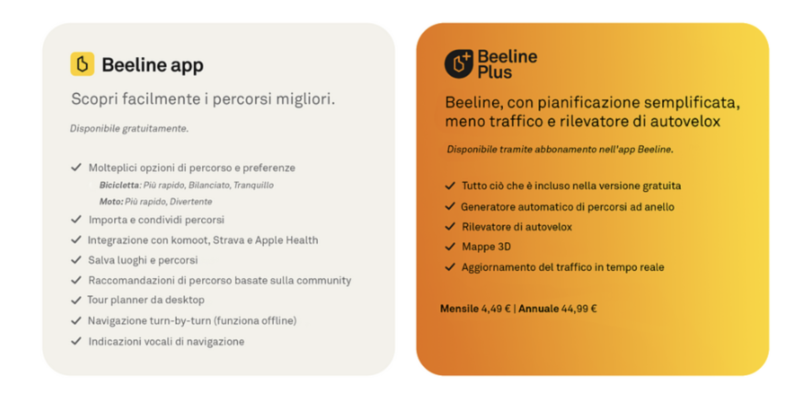 Beeline Plus arricchisce la sua offerta premium con una novità: gli avvisi autovelox. Questa funzione si unisce a una suite già completa che include la pianificazione avanzata dei percorsi, aggiornamenti sul traffico in tempo reale e mappe esclusive. Con questo potenziamento, Beeline Plus diventa il compagno ideale per ottenere il massimo da ogni uscita, garantendo sicurezza e serenità.