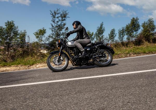 L'estetica fortemente vintage si fa notare per le selle separate di pilota e passeggero, per le ruote a raggi di grande diametro e lo scarico lungo a basso con terminale a collo di bottiglia.