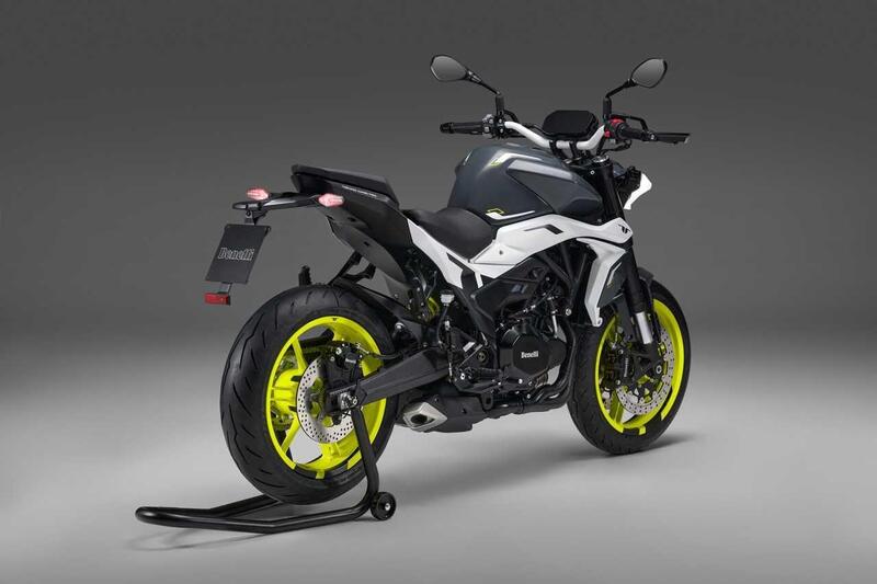 TNT è una sigla ben nota a tutti gli amanti delle moto pesaresi ed è sinonimo di sportività nuda. Il concetto viene riproposto da Benelli partendo dal collaudato (e vendutissimo) bicilidrico 500 di TRK 502 e Leoncino ma con un nuovo linguaggio formale, aggressivo e con volumi protesi in avanti. A completare il design è il nuovo fanale che accompagnerà quella che sarà la futura famiglia delle naked sportive: le luci diurne (DRL) descrivono una “T” alla vista frontale, completamente separate dai moduli di luce abbagliante ed anabbagliante che si trovano invece nella parte centrale. Come anticipato il motore è il 500 bicilindrico frontemarcia, 4 tempi, raffreddato a liquido, capace di offrire una potenza massima di 47,6 CV (35 kW) a 8500 giri/min ed una coppia massima di 46 Nm a 6000 giri, aggiornato per questo modello alla normativa Euro 5+. Un motore apprezzato per la sua fluidità e regolarità d’erogazione che è stato aggiornato con un nuovo disegno sia per il coperchio frizione che per il coperchio trasmissione, in accordo con la posizione del motore nel nuovo telaio e lo stile della moto. Inoltre, alcuni aggiornamenti sono stati apportati all’impianto di scarico, con nuovi catalizzatori adeguati al rispetto delle normative vigenti e alla scatola filtro, che consente di ottimizzare il sistema di aspirazione sia in termini di prestazioni che di emissioni sonore. A completare il quadro motore, lubrificazione a carter umido, frizione multidisco a bagno d’olio con asservitore di coppia ed antisaltellamento e cambio a 6 velocità con trasmissione finale a catena.
