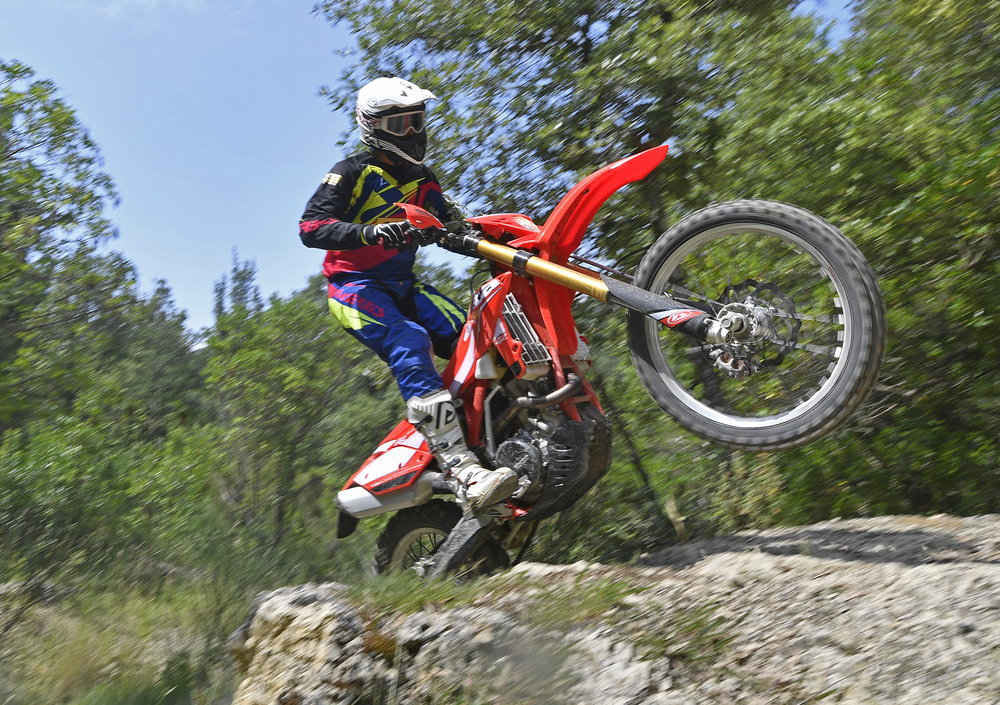 Terminiamo la nostra prova con la poderosa Beta Enduro RR 480 4t. Il grosso mono ha tanta forza già ai medi regimi. Sfruttarne la potenza nei passaggi stretti dell'enduro significa arrivare presto alla riserva. E non parliamo di benzina, ma di energie del pilota. Il 480 va guidato con le marce lunghe, dosando con criterio la potenza, che è davvero sostenuta. Questo è un motore che vi farà godere sui percorsi rallistici (infatti spopola nel Motorally) oppure se amate girare sui tracciati sabbiosi.