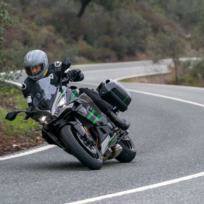 Come le forme classiche e morbide della carenatura, dominata dal faro tondo incassato nell'avvolgente cupolino, e il telaio in traliccio di tubi d'acciaio integrato da piastre laterali in lega di alluminio. Il motore è il quattro cilindri in linea di 1.043 cc da oltre 140 cavalli dell'ultima Kawasaki Ninja 1000SX.