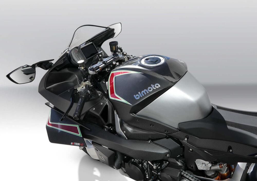 Un po' come l'Edizione Finale della prima Tesi 3D, la nuova Bimota Tesi H2 (qui tutte le informazioni) si propone come versione ancora più raffinata dell'atipica sportiva riminese. Tutte le sovrastrutture vengono sostituite con (meravigliose) unità in fibra di carbonio, determinando una livrea ancora più affascinante, con un bel contrasto con il serbatoio in acciaio spazzolato.