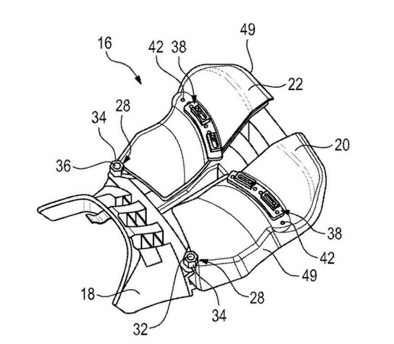 I disegni mostrano che le due sezioni posteriori, allontanandosi reciprocamente, lasciano uno spazio vuoto tra di loro senza che venga chiarito come e se questo spazio venga colmato ma con ogni probabilità questo brevetto è un punto di inizio, anche perché non crediamo che BMW non abbia pensato, per esempio, a una regolazione elettrica dell'ampiezza oppure a integrare ventilazione e riscaldamento/raffredamento (come già fatto da Indian, per esempio).
