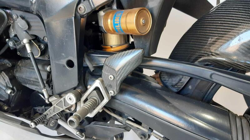 La moto è dotata di sospensioni Ohlins regolabili manualmente, che garantiscono una tenuta granitica sulla strada; nel tempo sono state sostituite tutte le plastiche esterne originali con dettagli in vero carbonio, tranne le due placche laterali del serbatoio e le piccole fiancatine posteriori che ad oggi non risultato mai essere state prodotte da aziende di accessori di after-market.