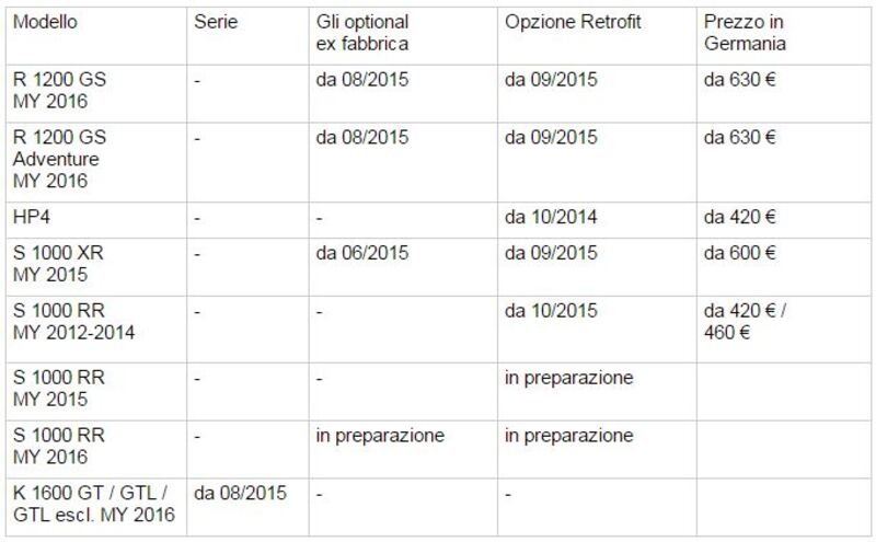 Dal giugno di quest'anno, l'ABS Pro è arrivato anche sulla nuova S1000 XR, sempre nel pacchetto optional dynamic, mentre dallo scorso mese di agosto è stato reso disponibile per le R1200 GS e Adventure, oltre che per la serie K1600.