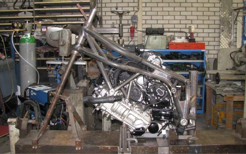 Il nuovo telaio l'ha realizzato in tubi tondi di acciaio al cromo molibdeno, ha allungato l'interasse a 1.635 mm e ha scelto una forcella rovesciata WP da 48 mm. Niente sospensione anteriore Duolever e nemmeno Telelever (una sospensione quest'ultima che conosce molto bene, avendo fatto il consulente per la casa di Monaco ai tempi del prima moto con il boxer R1100) per una dinamica di guida più tradizionale.