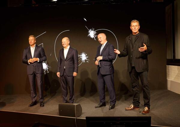 Il Presidente del Consiglio di Amministrazione di BMW AG, Oliver Zipse, e il Direttore di BMW Motorrad, Dr. Markus Schramm, alla presenza del Cancelliere Federale della Repubblica Federale di Germania, Olaf Scholz, e del Sindaco di Berlino, Kai Wegner, hanno inaugurato nella giornata di giovedì 28 settembre, il BMW Motorrad Welt a Berlino come momento culminante delle celebrazioni dell'anniversario del marchio.