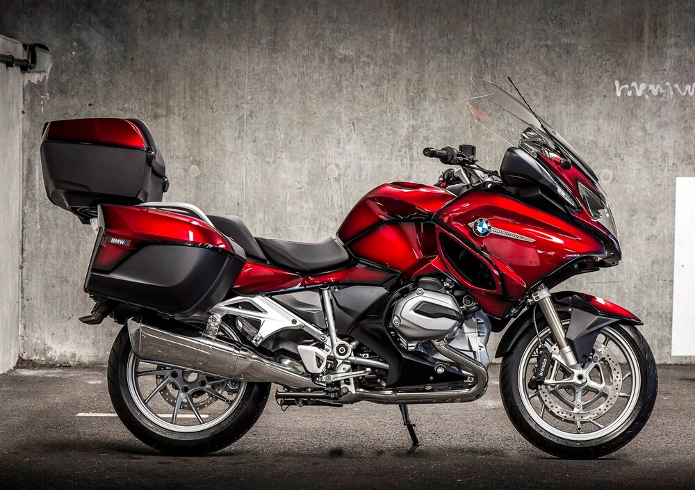 La RT Iconic parte dalla RT LE standard. La verniciatura in rosso ha sfumature scure (come sulla R 100 RT degli anni Settanta), il sistema audio e il pacchetto dinamico che comprende anche la partenza assistita in salita, fari e riding mode Pro, e il top case.