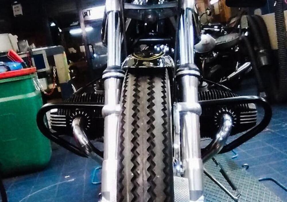 Il desiderio di George è quello di avere una moto easy and confortable to ride, con un good size engine tank and seat e così si comprende meglio la scelta di adottare un serbatoio derivato da una R 100, certamente capiente quanto richiesto dal proprietario, e una sella in unico pezzo di dimensioni generose. Il singolo scarico sulla sinistra - realizzato da Olivi Motori come parte dell'impianto elettrico - stimola la curiosità di sentire in moto il boxer da 80 cv.