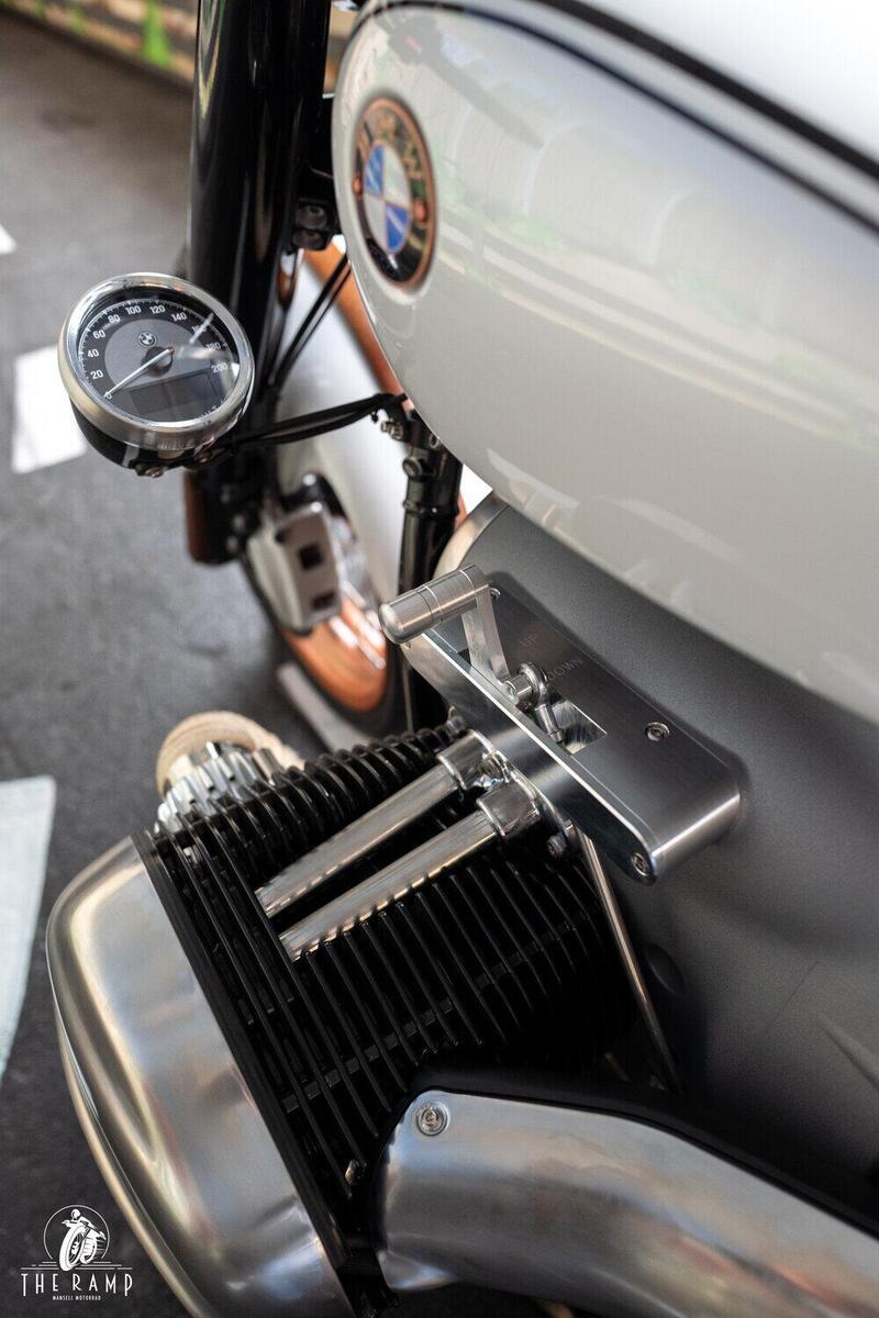 Greg Mansell e Steve Burt hanno quindi provveduto a riscrivere la veste estetica della R18 e dotarla di qualche dettaglio assolutamente unico: partiamo dall'abbandono del nero e delle cromature in favore di una vernice Pearlescent White, dall'aggiunta del sellino del passeggero e dai diversi dettagli in legno come la copertura del radiatore dell'olio, i pannelli laterali, tappo del serbatoio o, ancora i contrappesi del nuovo manubrio.