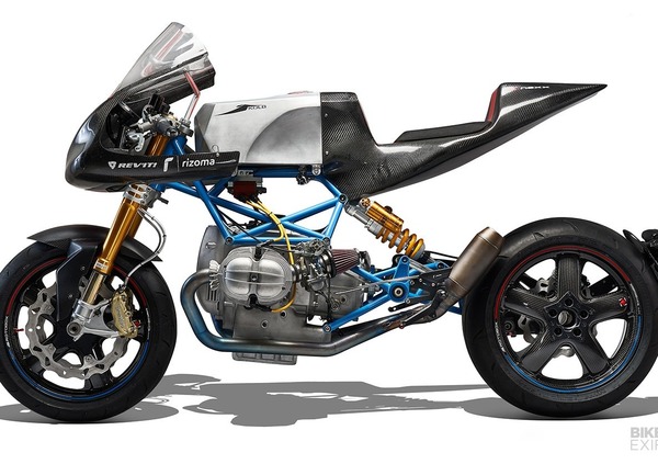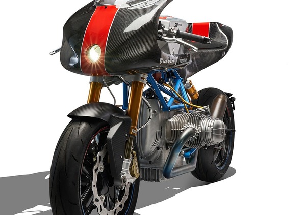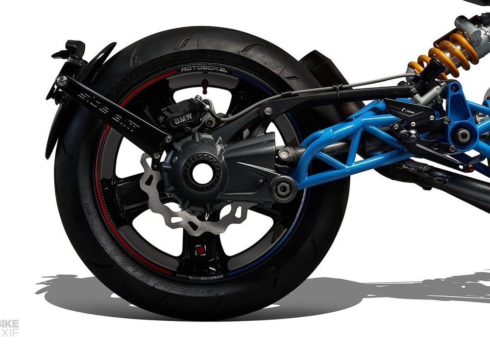 Il risultato è radicale ma ben riuscito, e la componentistica utilizzata merita un approfondimento: Rotobox ha fornito gli splendidi cerchi in fibra di carbonio, utilissimi per tagliare al minimo il peso; sono state adottate sospensioni completamente regolabili a marchio Öhlins, mentre le pedane, le leve, gli specchietti e il portatarga arrivano dal catalogo Rizoma dedicato ad un’altra BMW, ovvero la R nineT, e sono ricavati dal pieno.