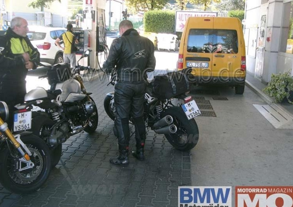 Era già stata fotografata camuffata, nel frattempo si era vista la splendida realizzazione Ninety firmata da Roland Sands, e ora ecco altre foto della versione pressoché definitiva della nuova 1200 roadster BMW. Le immagini sono state colte sulle strade attorno al Lago di Garda e pubblicate sul sito della rivista tedesca Motorrad Magazin. Dalle foto si apprezza la linea con chiari riferimenti al concept di Sands, più che alla LoRider BMW precedente, una sorta di café racer con codino monoposto e con il doppio scarico parallelo che corre basso sul lato sinistro (ma un altro prototipo avevo lo scarico singolo più rialzato), all'opposto del monobraccio della trasmissione a cardano che è sempre nello stile Paralever.