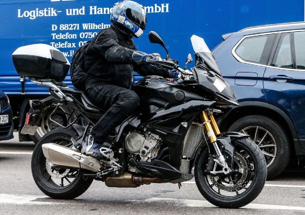 Che su questa versione più turistica trova un altro possibile impiego. Come scrivemmo in altre occasioni, un mille con quel frazionamento e quella compattezza può andare benissimo su una turistica dal carattere molto sportivo. Una crossover capace di mettere nel mirino Ducati e KTM sul fronte delle prestazioni pure e del divertimento di guida. Facilmente questa moto potrà avere una potenza dell'ordine dei 160 o forse più cavalli, tanto è vero che la ciclistica ha un'impostazione molto stradale e parrebbe dimensionata adeguatamente. A partire dal telaio derivato dalla S 1000R, dalle ruote integrali da 17, dall'impianto frenante anteriore con dischi di grande diametro e pinze radiali Brembo, fino ad arrivare al forcellone surdimensionato. Sospensioni di escursione lunga e posizione di guida si avvicinerebbero alla 1200 GS, ma con un assetto meno rilassato e quindi più in linea con una destinazione puramente stradale. D'altra parte la luce a terra sotto il motore e lo scarico non è molta per pensare all'off-road. Ci sono il cupolino regolabile, i paramani, la sella ampia per il passeggero e il portapacchi integrato nella sua funzione dagli attacchi per le borse laterali rigide. Dalla scelta dell'equipaggiamento elettronico si capirà anche dove vorrà andare a parare BMW alla voce prezzo visto che, ad esempio, con la S 1000R ha ridimensionato il suo listino abituale.