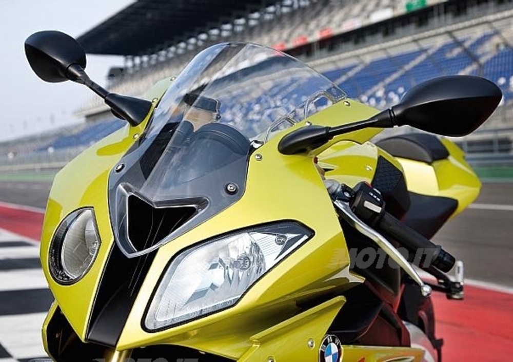 Naturalmente BMW ha potuto approfittare parecchio dell'esperienza derivante da anni di competizioni in Formula 1, sia a livello di motore che di aerodinamica. E se il suo aspetto e le sue soluzioni tecniche inevitabilmente per molti parranno inevitabilmente ispirati alle varie concorrenti giapponesi, va comunque riconosciuto ai tedeschi che il risultato ottenuto in soli 4 anni di lavoro è davvero interessante. La S1000RR, costruita tutta a Berlino, telaio compreso, monta un motore che pesa poco meno di 60 kg (un record di categoria, dicono) che nonostante l'importante alesaggio di ben 80 mm - scelto in modo da avere una corsa corta e favorire quindi regimi di rotazione elevati - ha consentito una sezione frontale della moto piuttosto compatta. Un motore che ha i cilindri inclinati in avanti di 32°, ed è dotato di testate tipo Closed Deck, leggeri pistoni da 253 grammi l'uno, valvole in titanio con ridotti angoli inclusi, alberi a camme forgiati, albero motore fasato a 180° per consentire scoppi regolari, airbox con cornetti d'aspirazione di lunghezza variabile, alberi del cambio (estraibile) sovrapposti a favore di un minor ingombro, frizione antisaltellamento azionata a cavo e, manco a dirlo, di acceleratore elettronice E-gas, o Ride-by-Wire che dir si voglia. E accreditato di oltre 193 cv a 13.200 giri (con limitatore a 14.200) e di quasi 11,5 kgm di coppia a 9.750 giri. Esaminando quindi i dati dichiarati dalla concorrenza (Aprilia RSV4 ed MV F4 1000 comprese), il motore tedesco supererebbe di 5 cv il più potente del lotto, ovvero il Kawasaki, girando anche al regime più basso di tutti, mentre come picco di coppia siamo esattamente nel mezzo del gruppone. Con queste credenziali dichiarate, la nuova BMW diventa anche la moto con il miglior rapporto peso/potenza della categoria. Da notare che l'innovativo impianto di scarico, completamente in acciaio inox, dispone addirittura di 3 valvole a farfalla a controllo elettronico, sistemate rispettivamente nel tubo di compensazione tra i due collettori esterni, in quello tra i due interni e nel collettore a monte del silenziatore, in modo da controllare alla perfezione l'erogazione a tutti i regimi. Naturalmente, Akrapovic ha già realizzato uno specifico silenziatore alternativo.