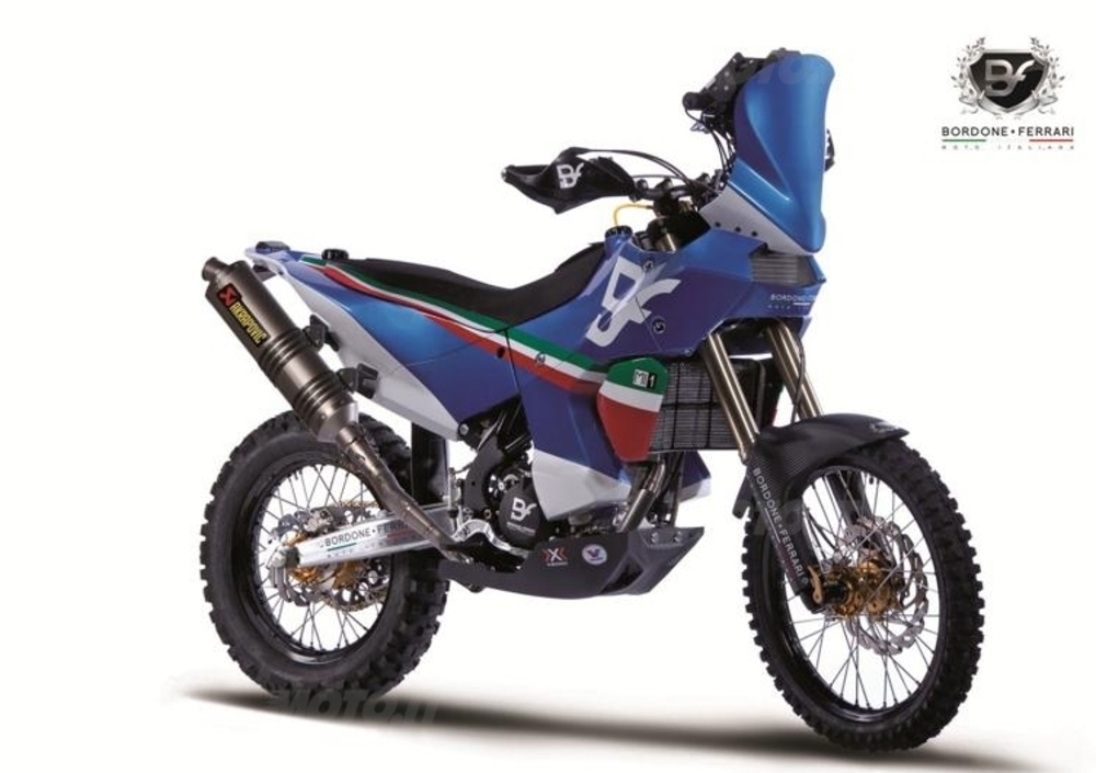 racchiudere tutte le caratteristiche funzionali della Mi1 in un “guscio” ispirato ad imprescindibili, per Bordone-Ferrari Moto Italiana, valori estetici. La linea della Mi1 è stata sviluppata dal designer Rodolfo Frascoli, e l’architetto Luca Mattavelli è il responsabile della grafica e delle scelte cromatiche. Perché la Mi1 deve essere una Moto da Rally vincente (avete capito adesso il numero 1…?)