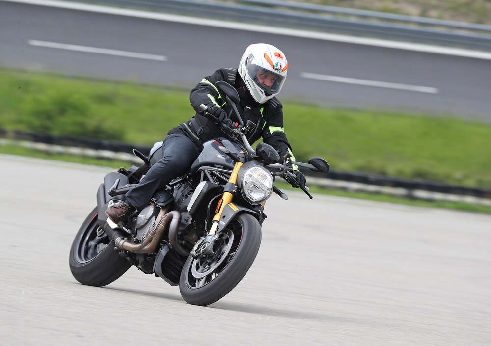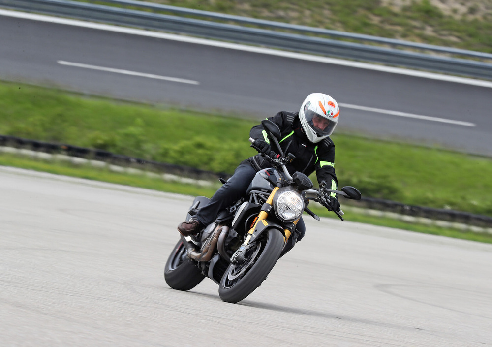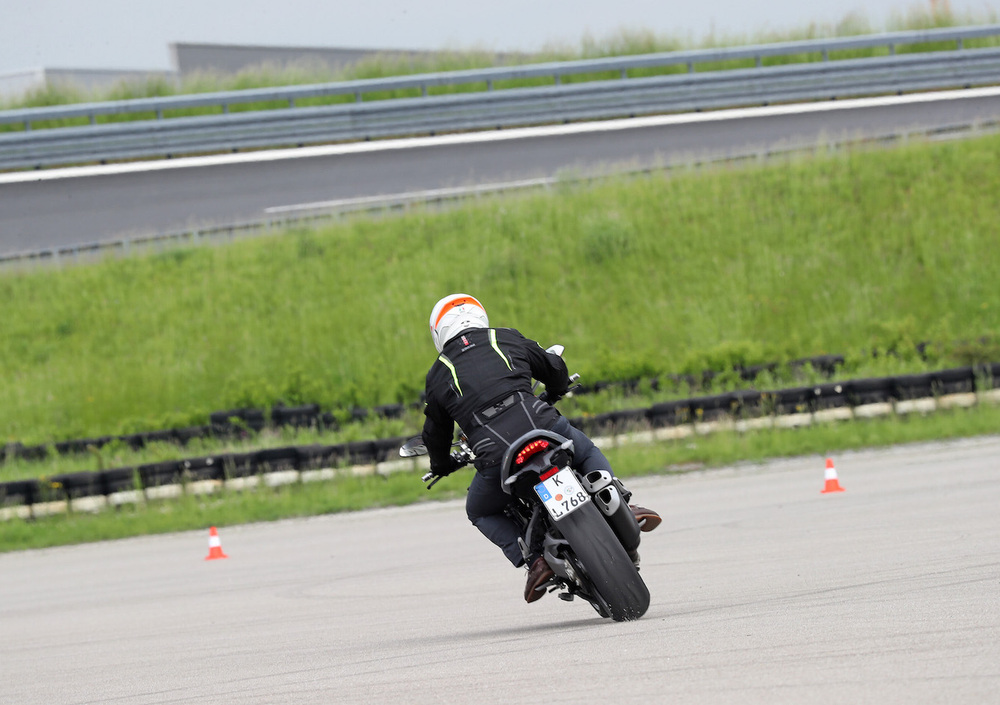 Per verificarne il funzionamento c’è stato bisogno intanto di resettare nozioni comportamentali derivate da decenni di guida: domare l’istinto e dare una strizzata al freno anteriore è operazione più semplice a dirsi che a farsi, ed infatti ci si arriva per gradi, aumentando progressivamente la velocità di percorrenza. Poi, chiudendo per un attimo gli occhi e raccomando l’anima al Cielo, ecco la prova della verità: decisa manata sul freno mentre si sta in piega!