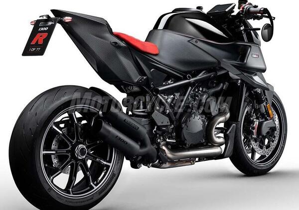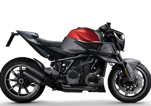La moto nasce da una collaborazione fra il marchio tedesco Brabus, specialista nelle preparazione di automobili, Mercedes soprattutto, e KTM. Si tratta di una modello costruito partendo dalla base telaio/motore della “Beast” 1290 Super Duke R EVO (in vendita a 21.450 euro), ma con una estetica più muscolare e insieme classica, con finiture differenti e ampio ricorso alla fibra di carbonio.