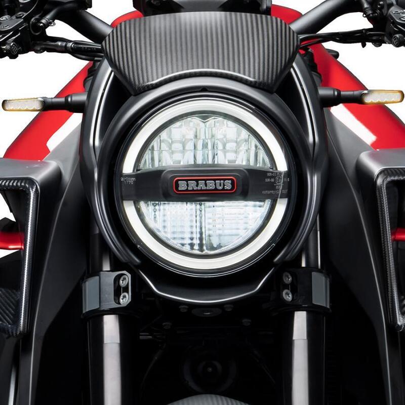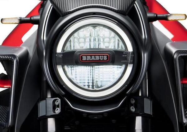 Cambiano i convogliatori laterali che confluiscono nel serbatoio, cambiano i cerchi (a nove razze), i terminali di scarico (doppi e sovrapposti sulla Brabus), il parafango anteriore e soprattutto sono differenti il fanale (singolo e rotondo) e il cupolino che lo avvolge.