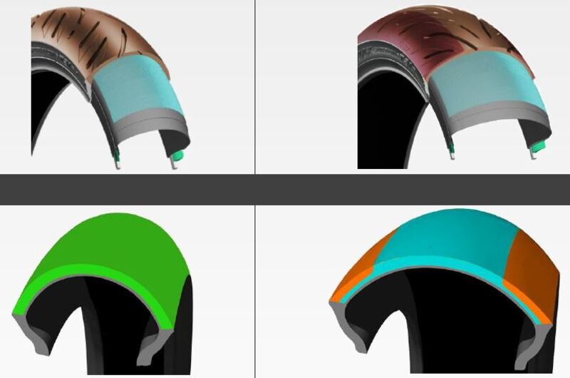 Cap&Base significa invece che sotto allo strato di mescole differenziate (le superiori “Cap” sono più morbide), c’è una strato “Base” più tenace che garantisce la rigidezza necessaria alla struttura.