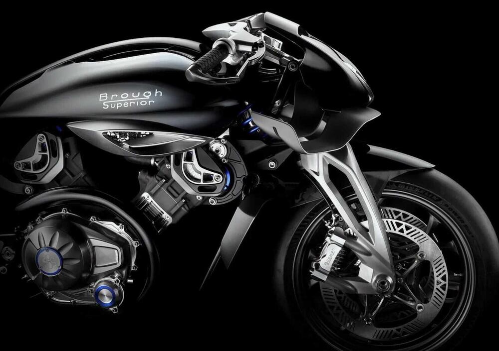 Design e dettagli tecnici sono davvero eccezionali, la RMB01 rompe con la tradizione delle naked Brough, adottando una mezza carenatura compatta e linee scolpite, arricchite da alette aerodinamiche ispirate alle moto da boardtrack degli anni ’20. L’effetto visivo è di grande effetto e in fatto di motorizzazione sappiate che al centro della moto pulsa un bicilindrico a V di 997cc turbocompresso, capace di erogare 130cv. Il telaio è una combinazione di alluminio lavorato con macchine a controllo numerico e fibra di carbonio; il tutto per garantire leggerezza e rigidità, mentre la sospensione anteriore Fior a doppio braccio e i dettagli meccanici a vista richiamano la complessità di un movimento d’alta orologeria.