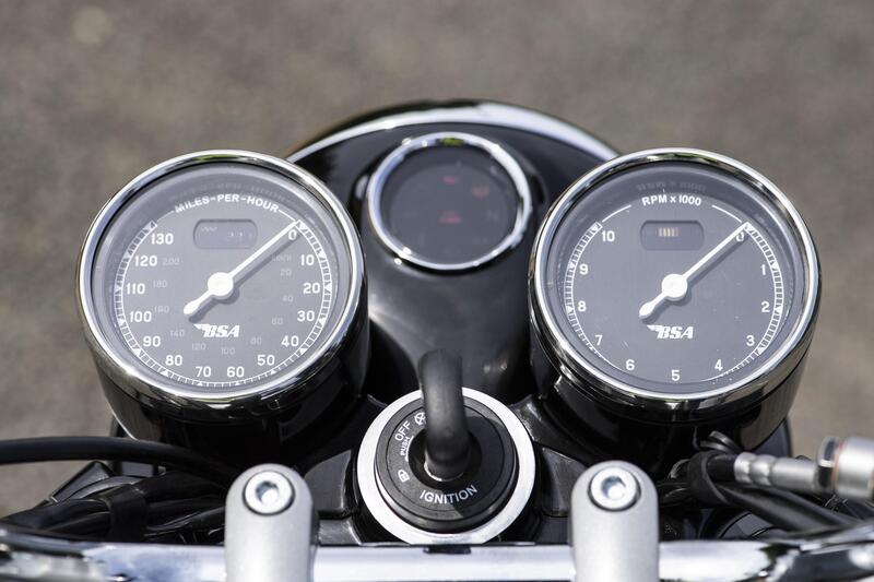 Buone le verniciature e splendida la cromatura del serbatoio (da 12 litri), bello il colpo d'occhio sulla strumentazione analogica con piccoli – molto piccoli – display digitali per trip e livello carburante, dove il tachimetro e il contagiri con movimento invertito rispetto a quanto siamo abituati regalano l'illusione di trovarsi di fronte a degli Smiths anteguerra, anche se sulla Gold Star 500 il tachimetro era a sinistra e il contagiri a destra: esattamente il contrario di oggi. Un altro piccolo strumento – che in origine era l'amperometro - annegato dentro il faro raccoglie le spie di servizio (c'è anche l'indicatore della stampella laterale aperta), mentre l'illuminazione è alogena. Rimarchevole la presenza di un'utile presa di corrente a 12 v accanto il fianchetto sinistro e di una doppia presa USB al manubrio, quest'ultima racchiusa dentro contenitore impermeabile poco in linea con l'atmosfera heritage della moto, mentre le leve al manubrio sono classiche e prive di regolazioni, in tono con il carattere della Gold Star così come i pedali di freno posteriore e cambio.