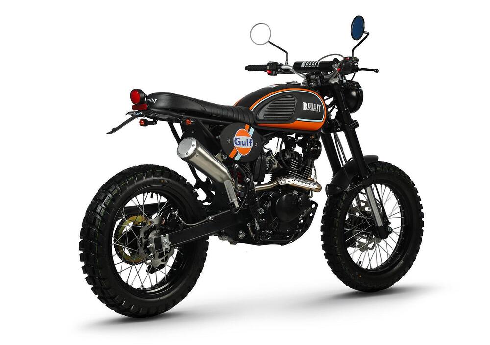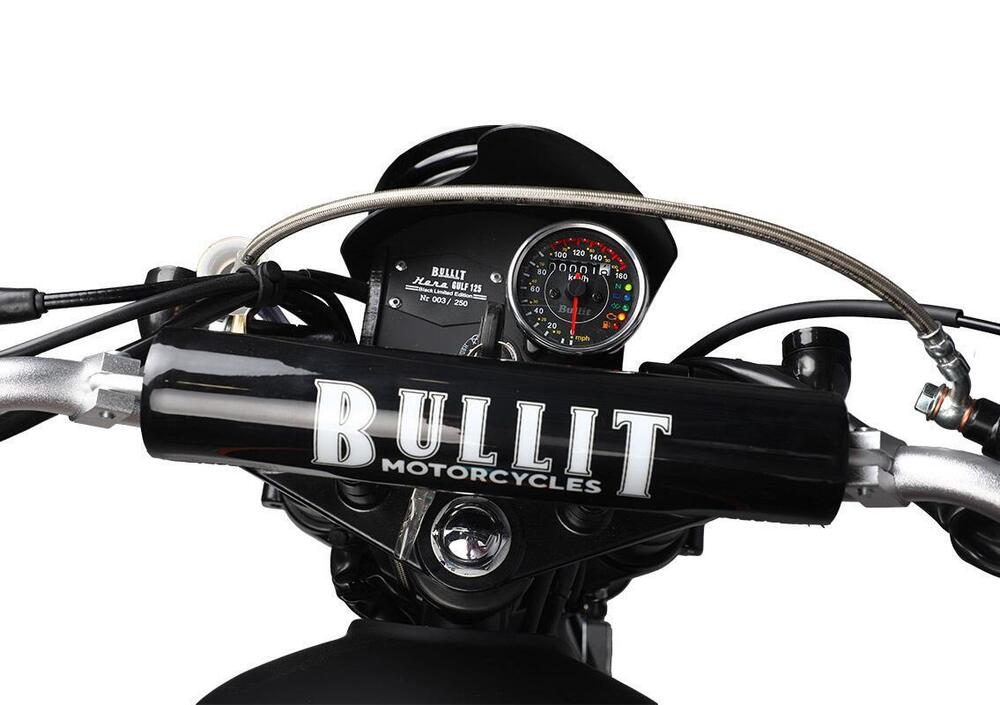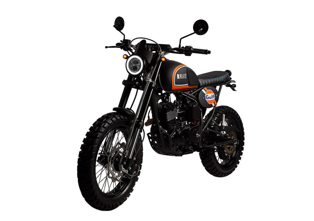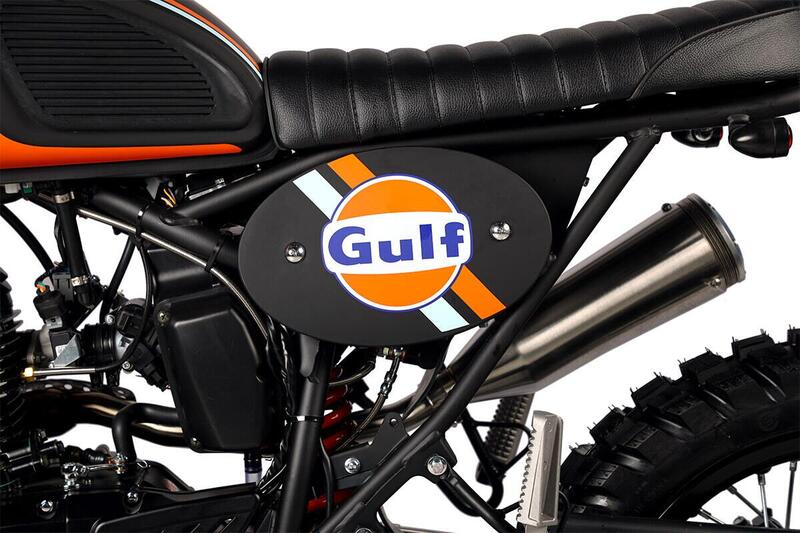 La Casa belga Bullit Motorcycles ha presentato una versione speciale e limitata della sua Hero 125: soltanto 250 esemplari per una - a nostro avviso - riuscita - livrea Gulf Black Limited Edition in collaborazione con Gulf Oil; la versione speciale non aggiunge nulla tecnicamente alla piccola scrambler di 125 cc, se non un gruppo ottico con DRL e la placchetta numerata che contraddistingue il numero progressivo dell'esemplare in edizione limitata.