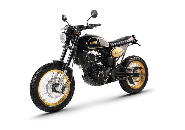 Ultima moto a entrare in gamma è la Hero 250, una scrambler che riprende le forme della Hero 125 già in vendita ma con molte novità. La principale è che il motore, sempre un quattro tempi monocilindrico, passa alla distribuzione bialbero e quattro valvole e al raffreddamento a liquido.
