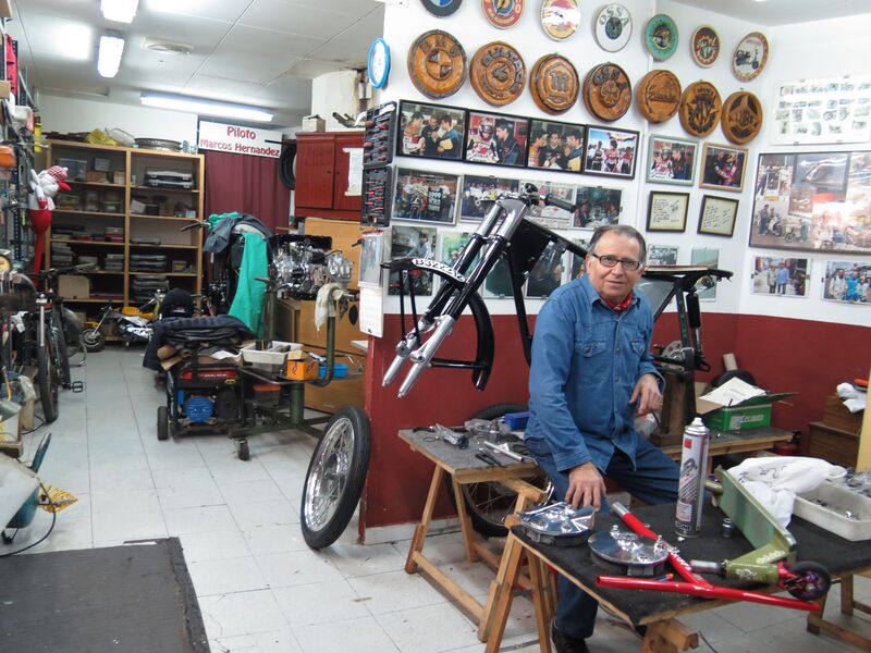 Don Antonio, è arrivato molti anni fa a Motril, Granada. Oltre ad essere il padre di Santi Hernández, Don Antonio è, prima di tutto, uno dei migliori meccanici della Spagna. Ha trascorso 40 anni in Catalogna e, da quando è arrivato, si dedica con amore e dedizione ai restauri di moto classiche o, come dice lui, di moto con 40 o 50 anni di esperienza.