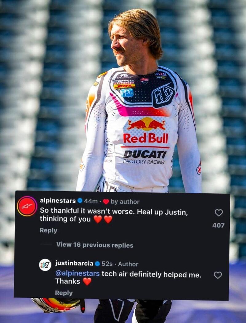 A colpire, nelle ore successive, è stato anche il messaggio pubblicato da Barcia sui social. Il numero 51 ha voluto ringraziare apertamente Alpinestars e, in particolare, il nuovo sistema Tech-Air MX, l’airbag sviluppato specificamente per il motocross. Un dettaglio tutt’altro che secondario.