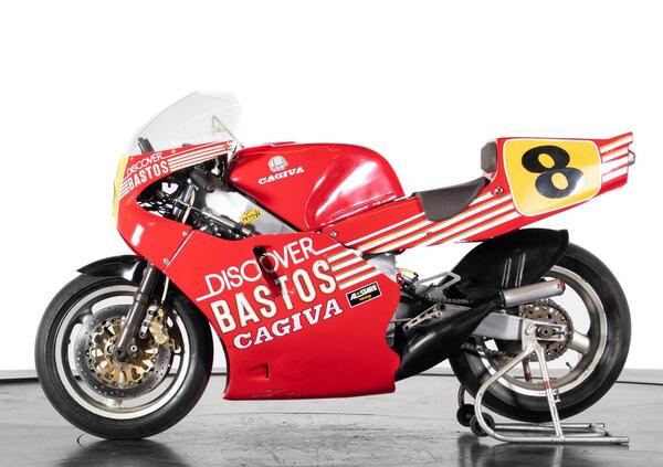 Non capita spesso di trovare in vendita una 500 da Gran Premio, men che meno una moto ufficiale. Gli amici di Ruotedasogno però non sono dei normali commercianti, e quindi non c'è troppo da stupirsi se fra le varie moto in vendita si trova una Cagiva C587, quella con cui Raymond Roche - quello che poi regalò il primo titolo iridato velocità ai Castiglioni e alla Ducati con la 888 nel 1990 - ha disputato il Mondiale 1987 in coppia con Didier De Radigues.
