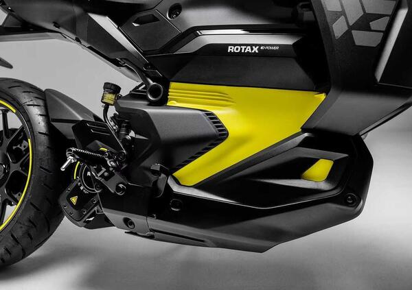 La parte in comune vede un motore sviluppato dalla Rotax (sempre di BRP) in Austria con 47 CV (ovvero i canonici 35 kW) ma disponibile chiaramente anche in versione da 11 kW. Non c'è il cambio, ma è presente la retromarcia e c'è ovviamente anche la rigenerazione. Questa tra l'altro è molto particolare perché è sia "passiva", ovvero in rilascio ricarica le batterie, sia "attiva" ovvero ruotando al contrario la manopola dell'acceleratore si ha un maggior freno motore e una maggiore rigenerazione. Entrambe le modalità sono però personalizzabili in base alle proprie preferenze.