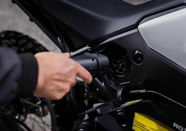 La batteria è elemento centrale del progetto in tutti i sensi e lo si percepisce dal design che l'ha letteralmente evidenziata di giallo fluo. Si tratta di un pacco da 8,9 kWh che viene assemblato direttamente da Can-Am nel Quebec. Una scelta particolare di dimensionamento che sta decisamente al di sopra di quello dei mezzi più urbani ma al di sotto delle maxi della categoria che puntano al turismo. La grande particolarità di questa batteria e di tutto il sistema propulsivo, però, è il raffreddamento a liquido una soluzione quasi inedita nel settore moto che consente di mantenere sempre le batterie alla corretta temperatura. I vantaggi ci sono sia durante l'utilizzo in quanto vengono evitati possibili cali di prestazione sia in fase di ricarica con prestazioni costanti e prevedibili e con la possibilità di fare più ricariche ravvicinate senza timore di surriscaldamenti. Inoltre la vita della batteria dovrebbe durare più a lungo proprio perché meno stressata dalle temperature. Il caricabatterie è da 6,6 kW e funziona sia con livello 1 sia livello 2. I tempi di ricarica sono dell'ordine di 50 minuti per il classico 20-80% con la Tipo2, di 3 ore e 10 minuti con la normale presa.