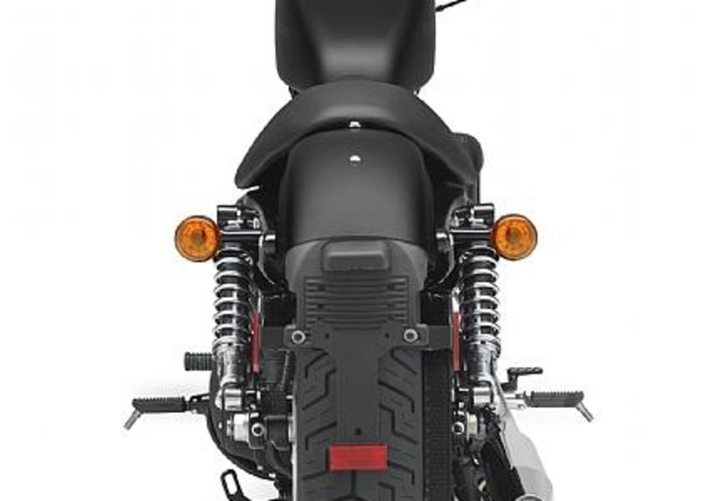 L'anima "dark" dell'Iron 883 è frutto della finitura rigorosamente nera di alcuni elementi tra i quali: cerchi in lega di alluminio, foderi forcella e supporti dei parafanghi, coperchio del filtro aria, serbatoio dell'olio, copricinghia, manubrio stile "Drag bar" e comandi a pedale montati in posizione intermedia.