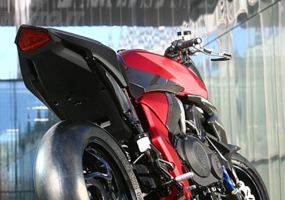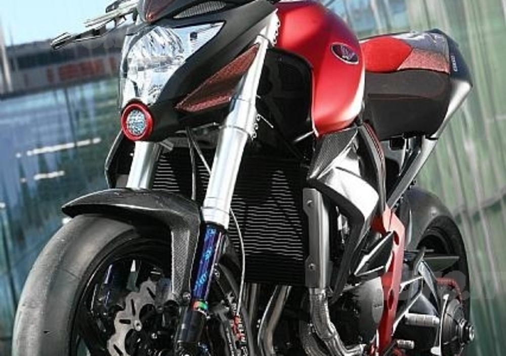 Tra le chicche annoveriamo la speciale Showa con steli anodizzati, i dischi Hanabira con pinze ad attacco radiale, lo scarico in titanio, le pedane allegerite e i diversi dettagli in fibra di carbonio.