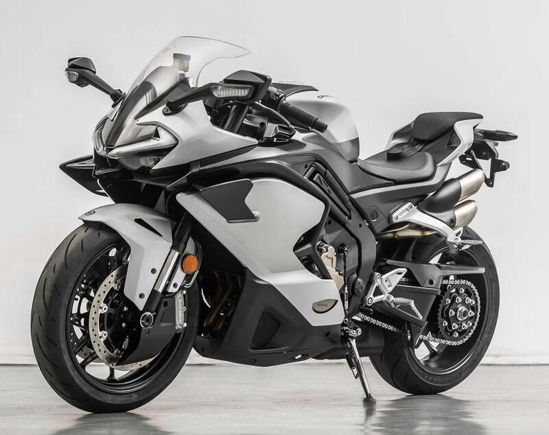 Sulla moto sappiamo che il suo motore quattro cilindri in linea da 749cc sarà capace di erogare 111cv in grado di far raggiungere ai 213kg di peso i 230km/h. Anche l’aerodinamica è dichiaratamente supersportiva, con tanto di ali aerodinamiche e, proprio per come accade su un aereo, allacciate le cinture!