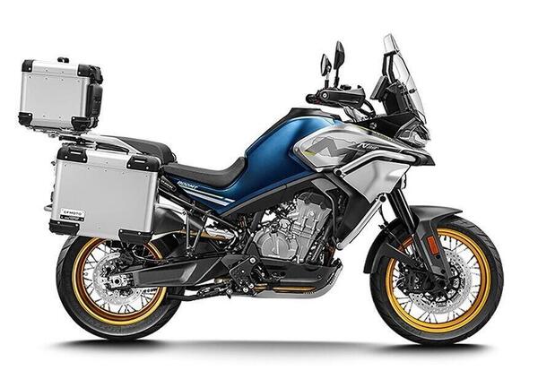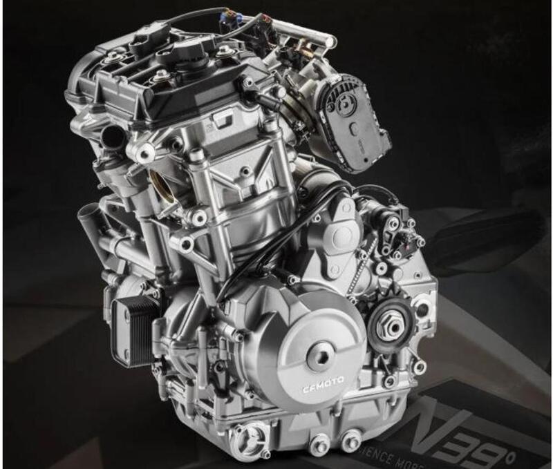 La moto, che la adventure di maggiore cilindrata prodotta attualmente in Cina, monta il motore due cilindri in linea LC8c della serie 790 di KTM ma è costruito in loco con i loghi CFMoto.