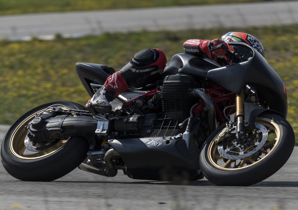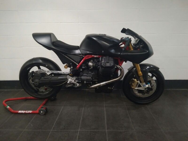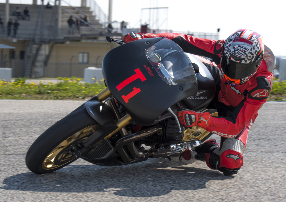 La moto, come ci ha raccontato Vittoriano Guareschi, è nata dalla richiesta di tanti appassionati di poter trasformare le loro Guzzi stradali in moto da pista per poter correre nei vari campionati. Può essere realizzata da una base Guzzi con motore big block a due o a quattro valvole e con trasmissione finale CARC.