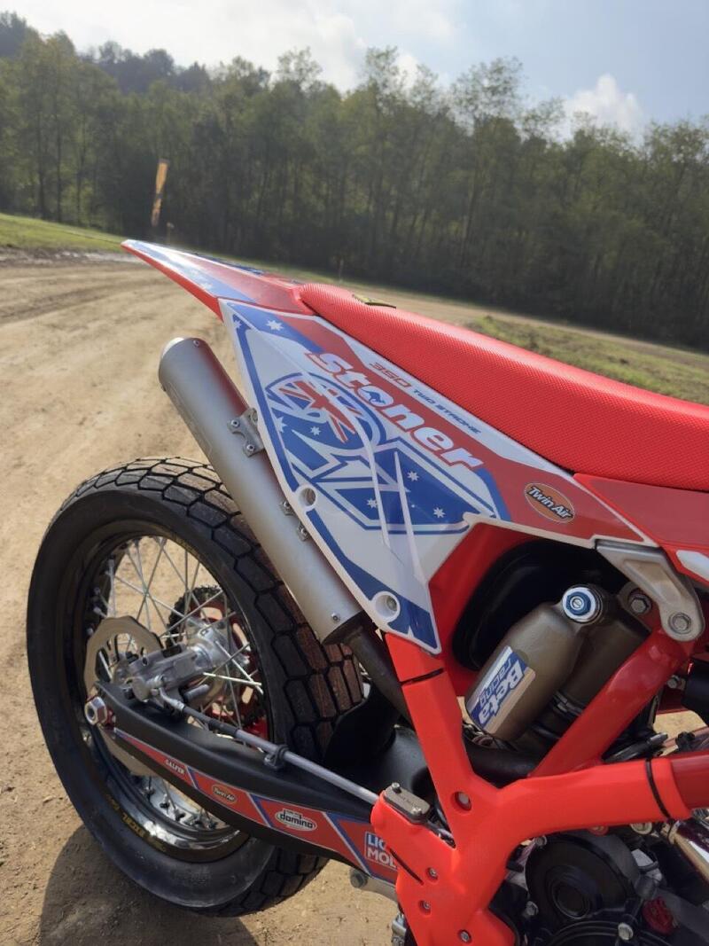 Nei giorni scorsi il due volte Campione del Mondo e Leggenda della MotoGP è stato visto sul circuito di Lombardore in compagnia dello staff Beta Motor e del "professor del traverso" Marco Belli. Presso l'autodromo torinese è stata di recente aperta proprio la pista dedicata al flat track e Casey Stoner ha potuto provarla in sella ad una Beta 300 due tempi. Forse più che la sua presenza in Italia a sorprendere è il fatto che non sembrava un comune giro in pista ma la preparazione a qualcos'altro. Come possiamo vedere dalle foto la moto era totalmente personalizzata con le sue grafiche e la sua attività aveva tutta l'aria di un test. Ma a cosa si stava preparando Casey Stoner a Lombardore?