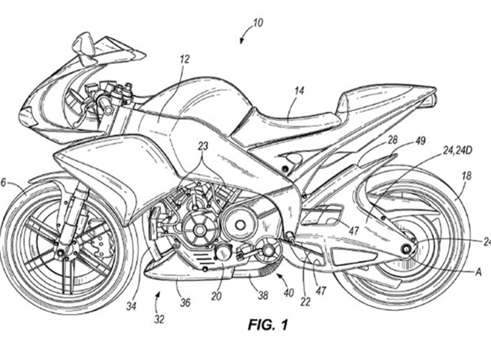 Questo brevetto in realtà è stato registrato nell’aprile del 2009, il che significa che, tecnicamente parlando, apparterrebbe ad Harley-Davidson, e non alla nuova società Erik Buell Racing, formata successivamente alla decisione della Casa madre di non produrre più motociclette Buell, lasciando all’estroso progettista la gestione sportiva del suo ex Marchio.